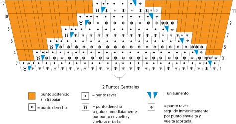 Vuelta C: como la vuelta A, tejer pd los puntos del empeine; seguir como en vuelta A, aumentando un punto en cada lado